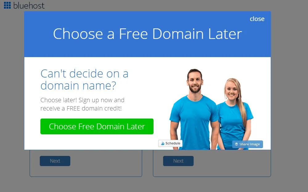 If the domain name that you’ve been thinking about is not available or you’re not sure what domain name to pick, no worries. You can choose your domain name later.